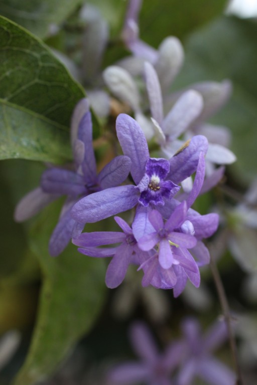 My Jade Vine is flowering. This is an unexpected gift because this vine shares a trellis with my odontadenia macrantha. I bought the jade vine as a sapling about two years ago and never took it out of its bag. I placed it next to the trellis in the cool and promptly forgot about it